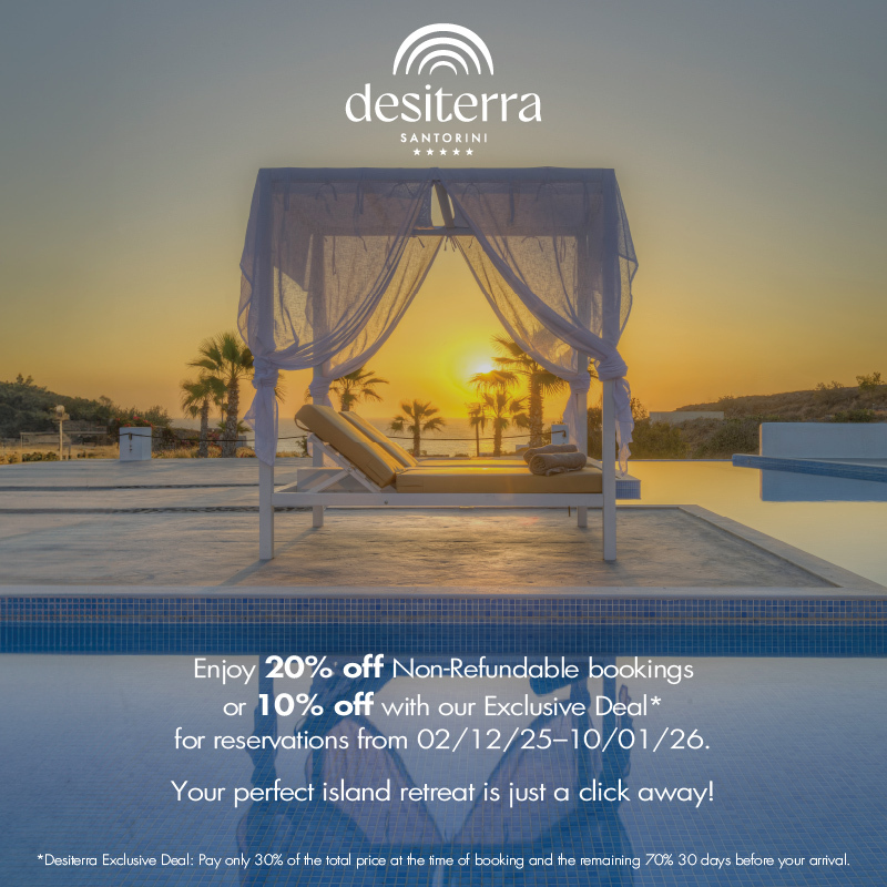 Nestled in the tranquil and idyllic outskirts of Santorini, Desiterra Villas stand as a testament to the deep reverence for Santorinian architecture, seamlessly harmonizing with the surrounding landscape to craft a captivating village. From bioclimatic cave houses to modern Santorinian residences, our villa designs span a spectrum of architectural elegance, employing just four elemental materials: stone, glass, wood, and metal.